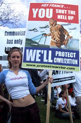 - [Pictures of Arafat and Saddam] "America, how can we concentrate on pushing the Jews into the sea while you wage your RACIST war against our people?"