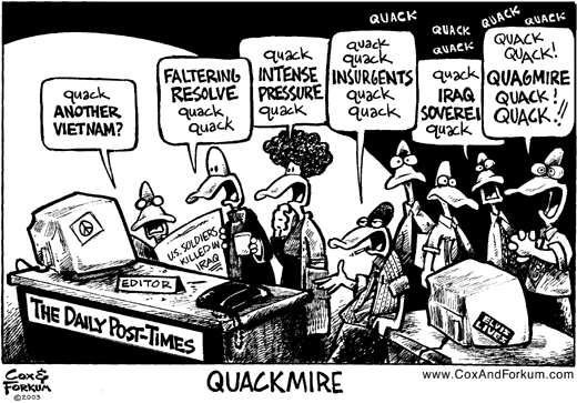 This cartoon was inspired by Charles Johnson’s LGF post, Press In Quagmire Frenzy: