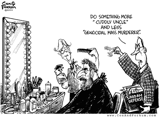 From his prison cell, ousted Iraqi President Saddam Hussein urged his compatriots to remain united against the U.S. occupation and warned of the potential dangers of the upcoming elections, his lawyers said Sunday. Iraqi lawyer Khalil al-Duleimi met with Saddam on Thursday, the first meeting since Saddam was captured a year ago. "Our representative in Iraq told us that the president warned the people of Iraq and the Arabs to beware of the American scheme aimed at splitting Iraq into sectarian and religious divisions and weakening the (Arab) nation," said Bushra Khalil, a Lebanese member of the defense team.This can only get worse.